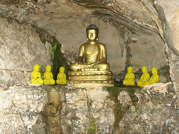 リフト降り場のすぐ側には洞窟があって、その中に仏像があった。