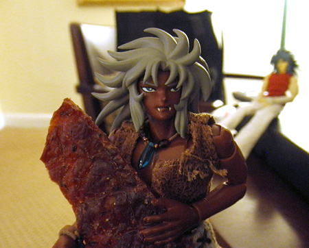 『…ああー、ビーフジャーキーうめえわー。安かったから買い込んじゃったよ』