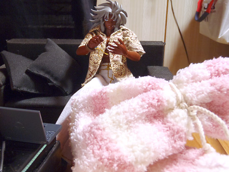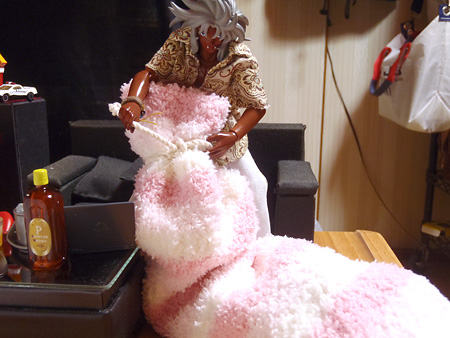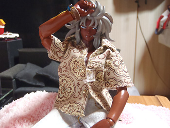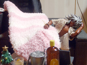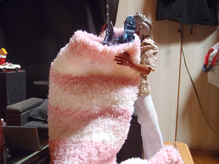『ま、こうすりゃ膝掛けにはなるな』