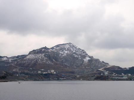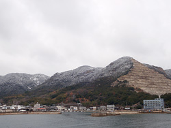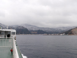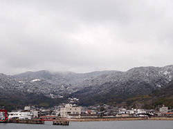 バスで港まで向かうのだが、折からの寒波で雪がちらついていた。