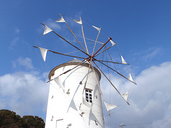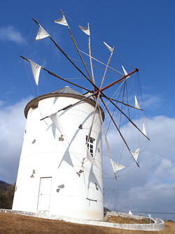 そして、見るだけでギリシャ気分、オリーブ園のランドマークとも言えるギリシャ風車。