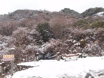 下界は晴れていても、山頂付近は絶賛降雪中だった。