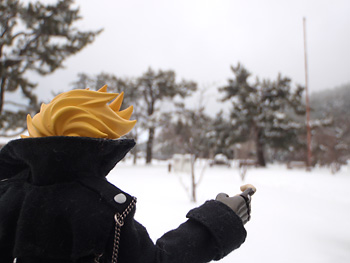 橋を渡って雪景色遊戯とかしたいが、靴に雪が入ったら洒落にならないので断念。