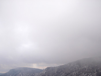 読んで字の如し、寒い上に遠くが降雪で霞んでいました。
