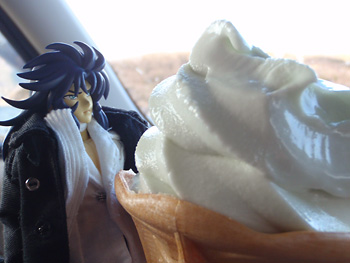 で、寒いのに何故か売店でご当地アイスを買っていた…。