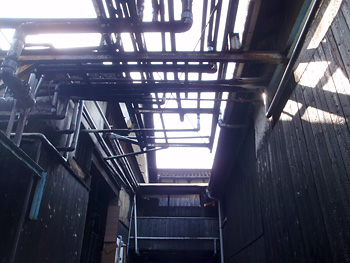 昔ながらの建物に、工場独特の複雑なパイプラインが好きだ。