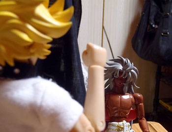 ラダマたわわちゃんコスチュームをサガに渡してご機嫌のAPラダ。