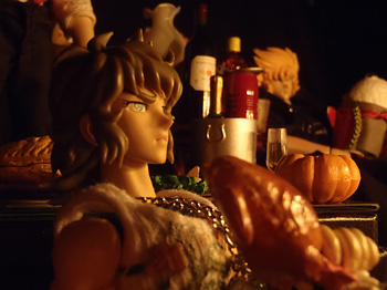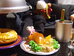 (…どうでも良いからロースト・チキンから手を離しやがれ)