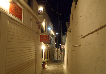 やっとの思いでサントリーニに辿り着いた管理人、アメニティーチェックと思いきや、なんと夜のフィラタウンを徘徊だ。