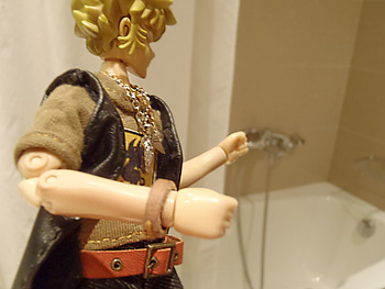 この風呂場、蛇口がバスダブの横の壁に付いていてなんしかシャワーが浴び辛かった。