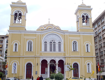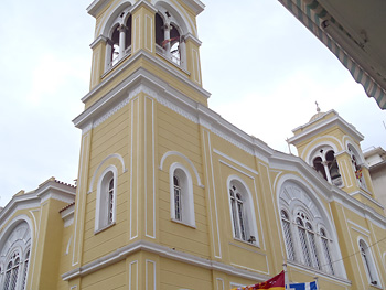 ディモクラティアス通りをゼア湾方向に向かうと、広場と教会に行き着いた。