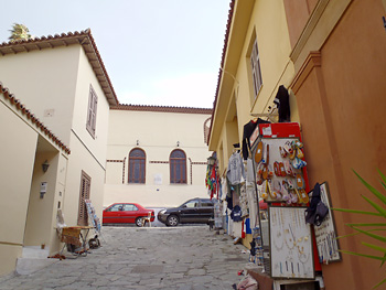 アクロポリスが近いので、この辺りはお土産物屋さんやタベルナ、レストランが建ち並ぶ。
