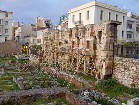 背後にはアクロポリスの丘が見える。