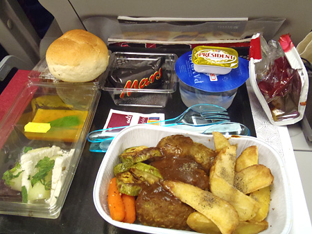 日が暮れた辺りで機内食タイム。