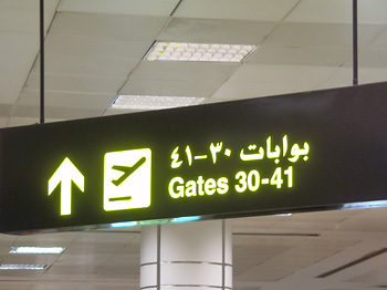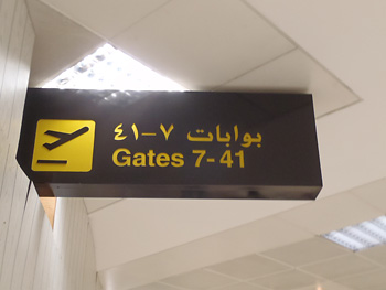 それを尻目にビジネスクラスゲートから悠々と入って行くアラブのお金持ち達。ファーストクラスは専用ラウンジで待機し、リムジンで送迎が来るそうな。混雑が嫌ならビジネスかファーストに乗れと言うことだ。