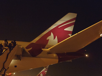 それからナメコを育てたりブログを打ったり、機内での暇つぶしに借りた「王様ゲーム」を読んだり居眠りしたりしているうちに、我らがRQ477便は深夜1時にカタールへと到着。