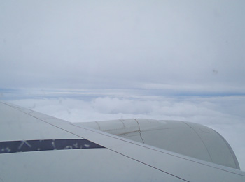 今回も安定の窓側、安定の翼の近く。右と左の窓を間違え、その上バゲッジから荷物を抜けなくなると言うプチアクシデントを体験。