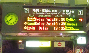 待てど暮らせど電車は来ず、来たとしても亀岡止まりになった。