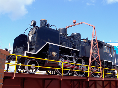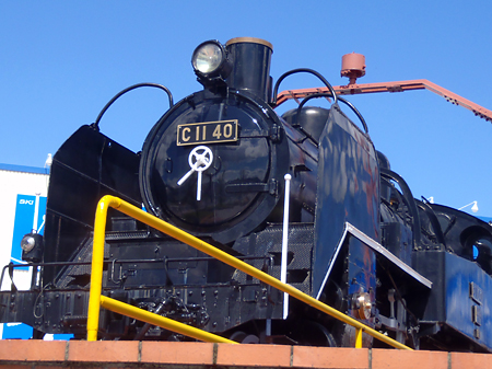 駅前の広場には機関車が展示されていた。