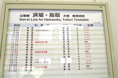14:57分の電車で鳥取方面へと向かうので3時間半滞在できる。