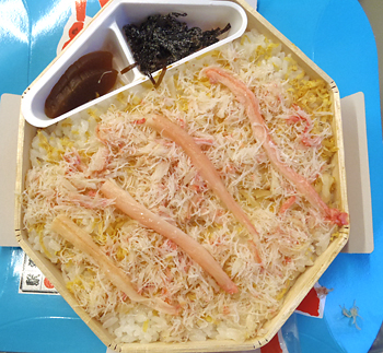 内容は蟹・寿司・奈良漬け・塩昆布・以上!