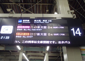 そう、山陽新幹線は22時台まであるが、東海道新幹線は20時台で終電なのだ。