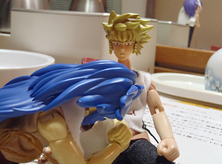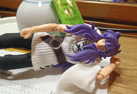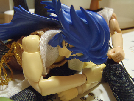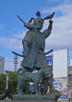 肩に雉だけでは飽き足らず、頭と手に鳩を乗っけている。