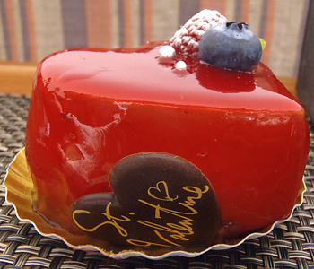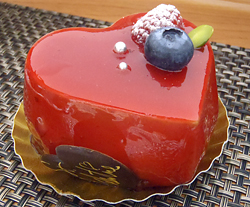 バレンタインデザインのハート形ケーキだ。