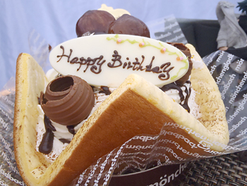 前回はケーキの無い状態で、本当に誕生日企画なのか疑わしい勢いだったが、ここでそれっぽくケーキ登場。