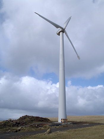風力発電の風車に行き当たった。