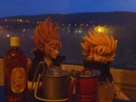 何と今度は夜のトシュバンをバックにウイスキーを嗜んでいる。