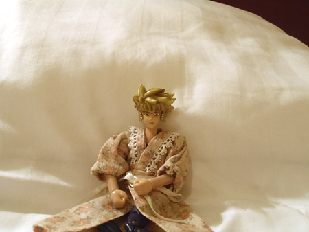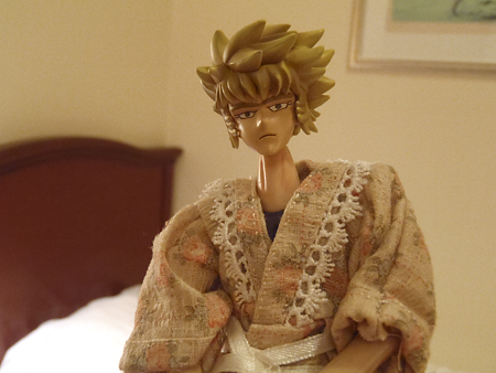 ラダマが着ているのは、昔スミさんに戴いたガウン風ネグリジェです。