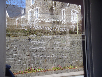 読みにくいが、月-木曜日17:30時まで、金曜日18:00時まで、土曜日14:00時まで、日曜日は書かれていない=お休みです。