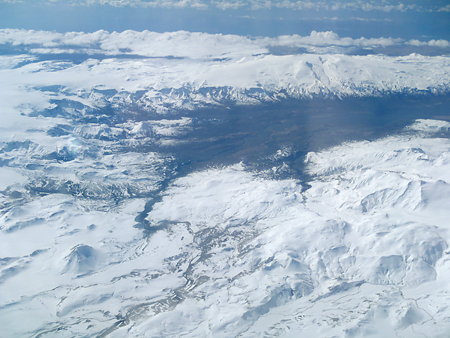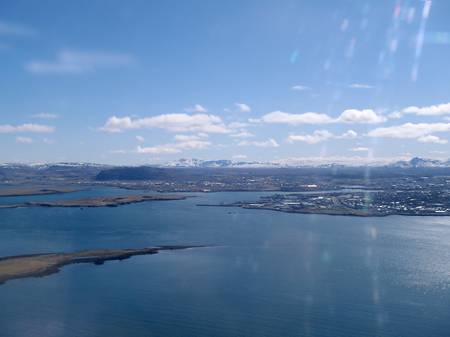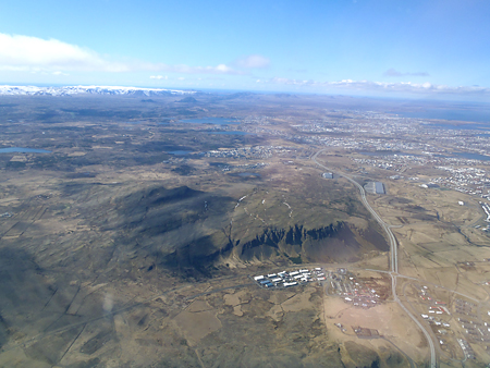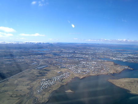 飛行機はアイスランドを横断し、一路レイキャビクへ。