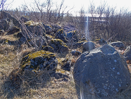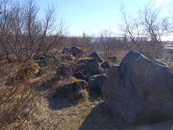 行きは雑木林コースだったが、帰りは開けているコースで丘を降りたらこんな岩場があった。