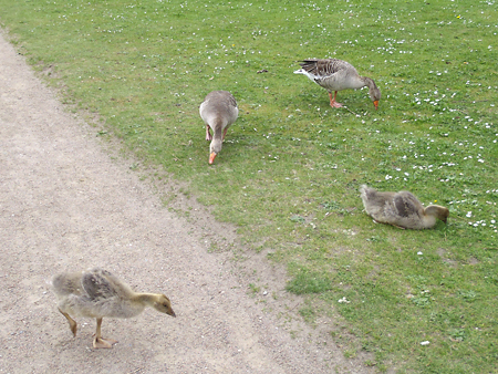 その芝生だが、家禽の落とし物だらけで地味に一人ツイスター状態となる。