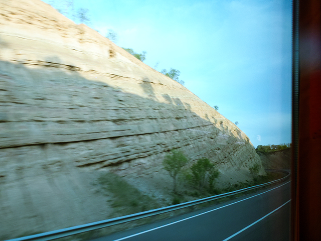 コンデジかつバスの車窓からなので、この雄大さが写真ではちっとも伝わらない。