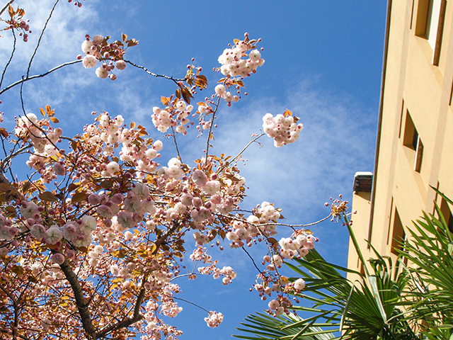 八重桜の種類だと思うが、撮影の腕が悪すぎて綿花にしか見えない。
