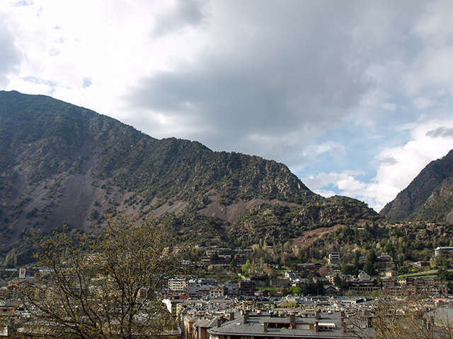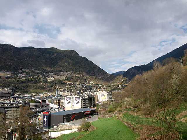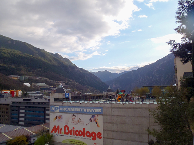 目の前にあるのはアンドラ・ラ・ベリャの街並みとピレネーの山々。