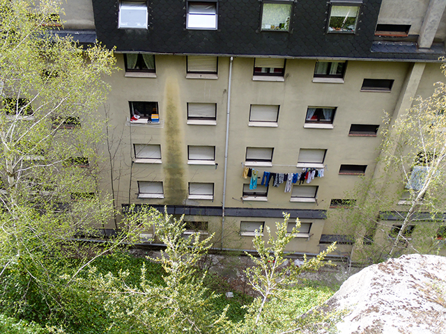 日照もヘチマもなさそうだが洗濯物は干されていた。