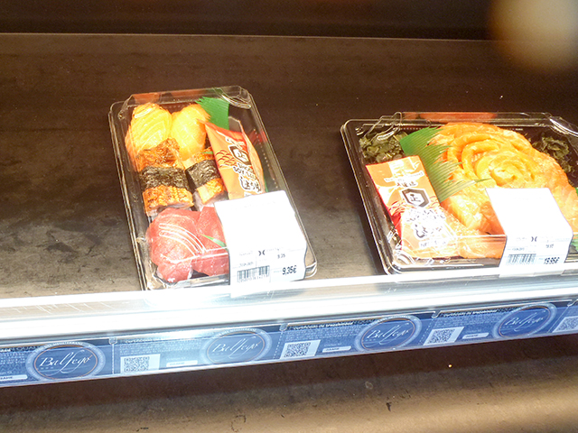 スペインではどこのスーパーの総菜売り場でも寿司が並んでいた。ただし、結構良いお値段。
