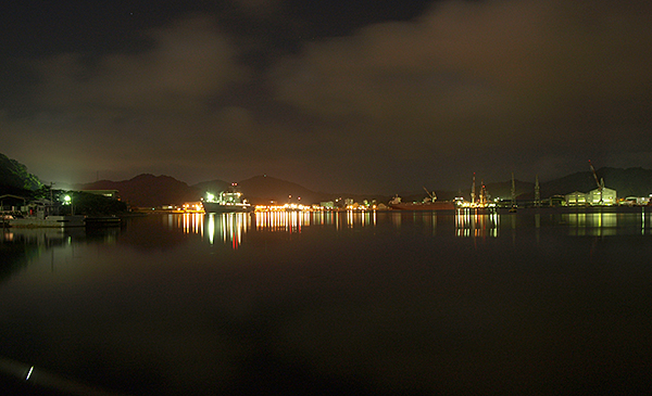 舞鶴湾は波が穏やかで水面が鏡のようになっていた。携帯やデジカメでは全く撮れなかったので一眼レフを引っ張り出して長時間露光で撮っていた。