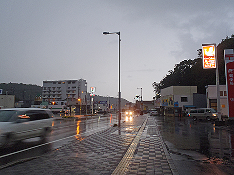 徒歩5分で一本道なのだが、物凄く遠く感じた。豪雨の中、ホテルが全く見えずにかなり途方に暮れた。