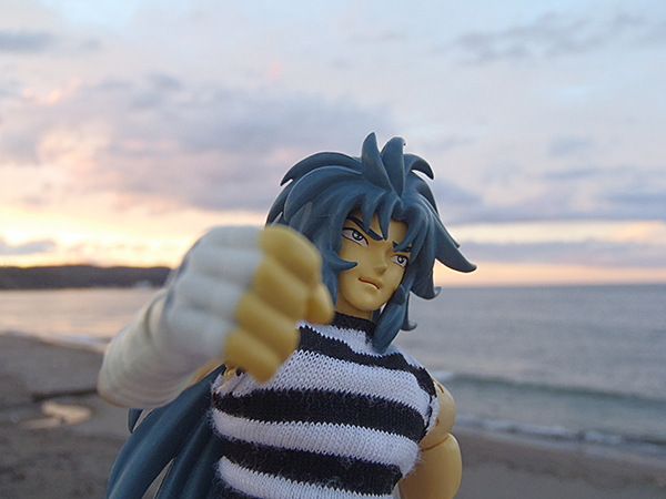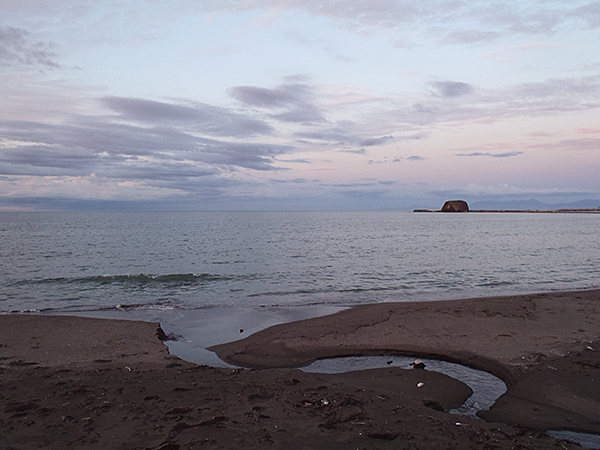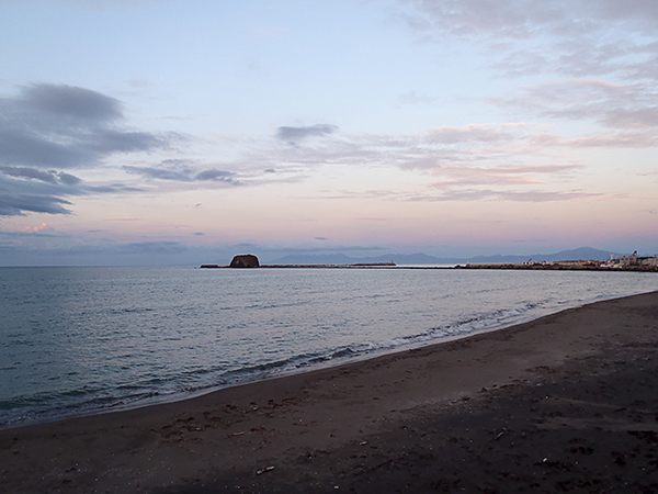 その後、空腹のまま何故か川を渡って海岸まで出てきた。