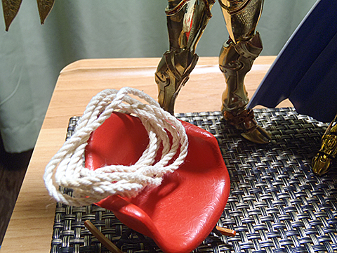 なんか、逃げようと思えば逃げられそうな縛り方。