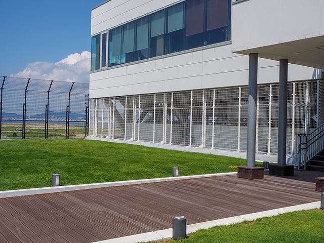 屋上から飛行機を眺める。