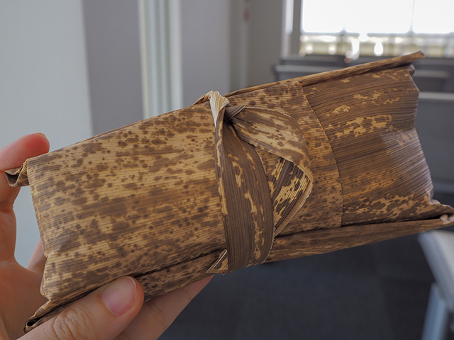 竹皮で包まれているぞ。