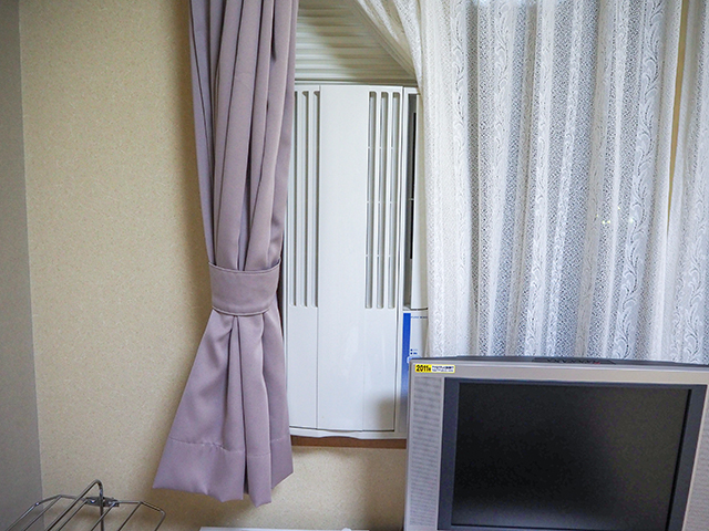 おお、これが窓エアコンと言う奴か。始めて見た。