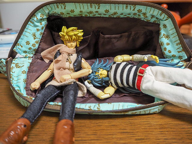 カメラ用のポーチがマイスのソファーと化していた。