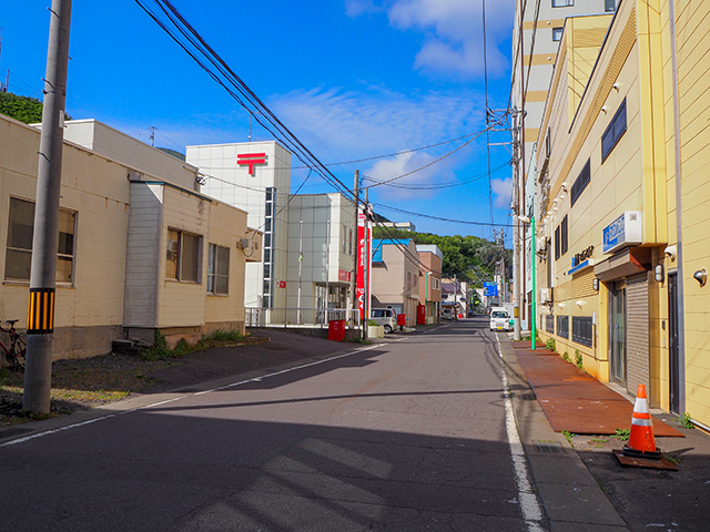 こちら香深町中心部。公民館や郵便局・商店などが立ち並ぶ。